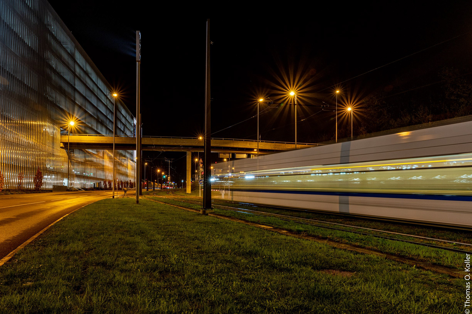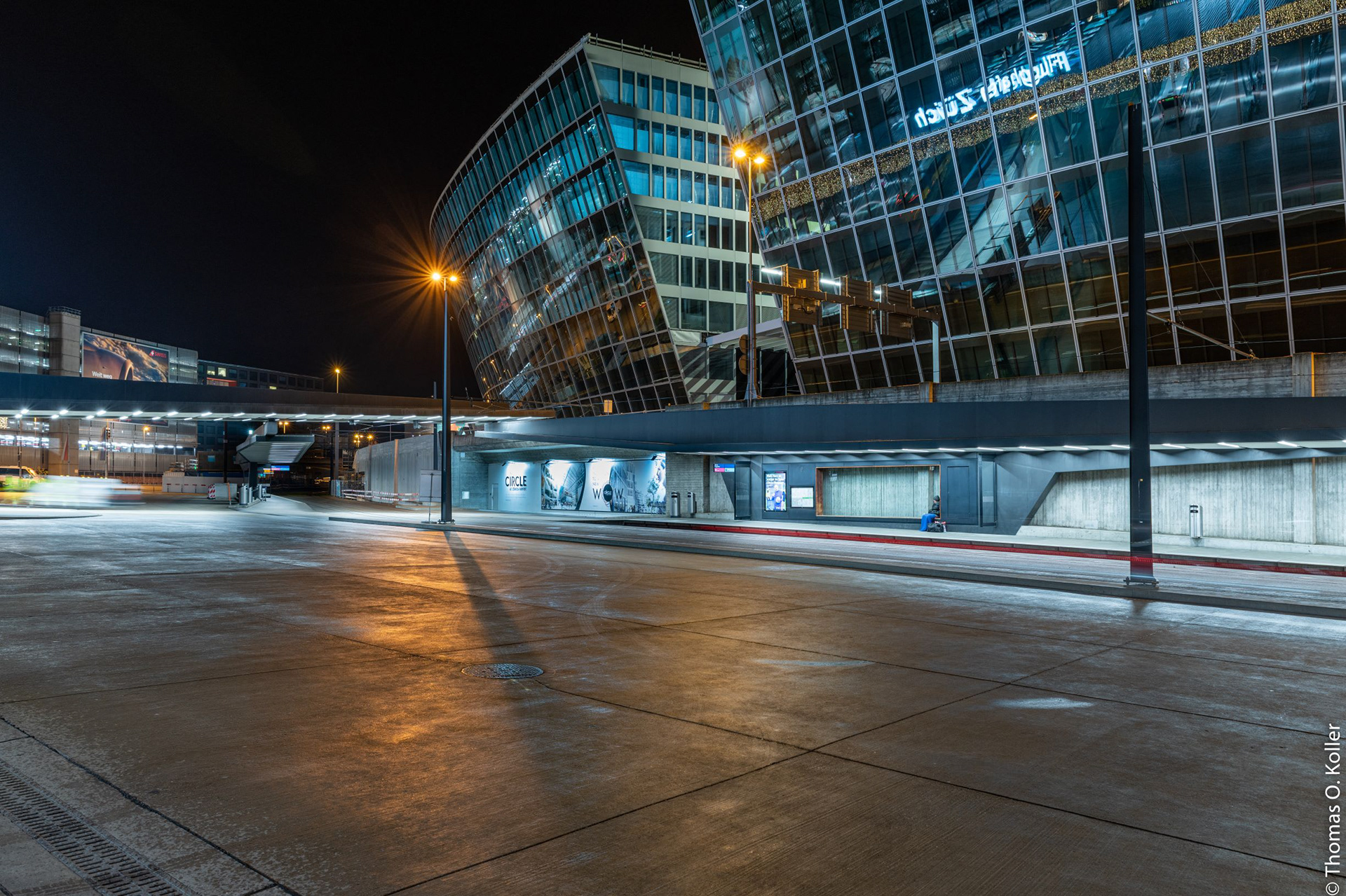 Flughafen einmal ohne Flugzeuge ... auch landseitig hat der Flughafen einiges zu bieten - vor allem nachts: Er bietet Farben; Bewegung, die man tagsüber gar nicht wahrnimmt, aber auch eine ganz seltsame Ruhe ...